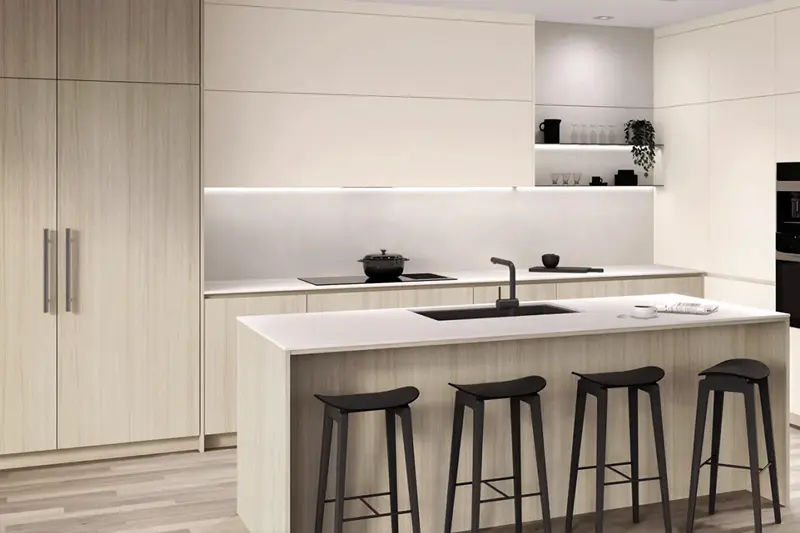 At the core of every Rosario cabinet is high-quality particleboard or plywood, engineered for superior strength and durability. Designed to withstand heavy use in both residential and multifamily settings, our cabinets provide long-lasting performance without compromise. To ensure an exceptional finish, we use premium PUR adhesive on all edgebanded products—a high-end bonding solution that others avoid due to cost.